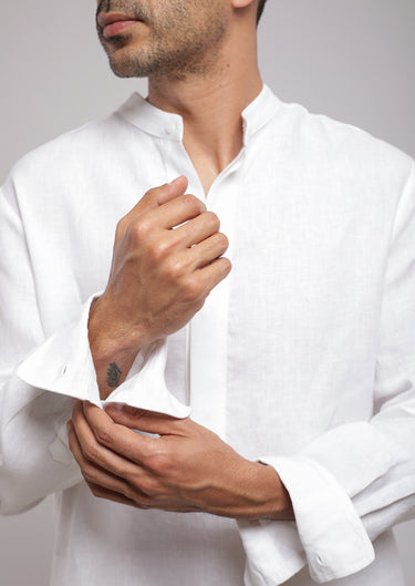 Col Mao avec patte cachée sur le devant. Manches longues avec poignets boutonnés.